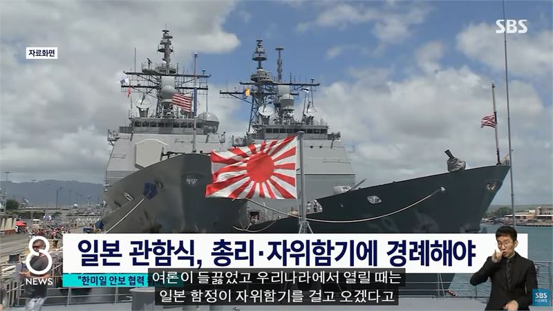 욱일기에게 경례를 하거나 받는 것은